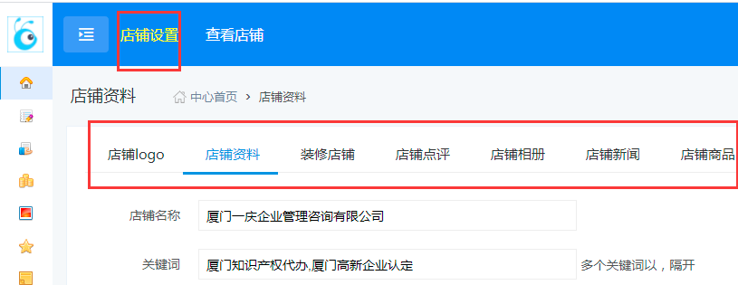 店鋪的菜單不再放在左邊(左邊菜單過多,眼花繚亂),在點擊店鋪設置后,店鋪菜單再集中顯示